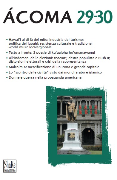 This study interrogates the conventional depicting of Hawai‘i both as a “tourist paradise” and as the melting pot of the Pacific, by investigating its troubled socio-political and cultural scenario and its colonial inheritance. The representation of Hawai‘i, typical of movies and tourist posters, draws upon the Anglo-American cultural tradition, starting with James Cook’s voyage in 1778, and serving the needs of colonial propaganda. Today, as the fiftieth US State, Hawai‘i experiences US cultural hegemony, which obliterates Native Hawaiians’ rights to self-determination, while silencing native and ethnic voices. While the Native Hawaiian Renaissance deconstructs the Anglo-American representations of Hawai‘i from the native’s viewpoint, the ethnic tradition provides a point of debate over the notion of melting pot and its ideological implications.
