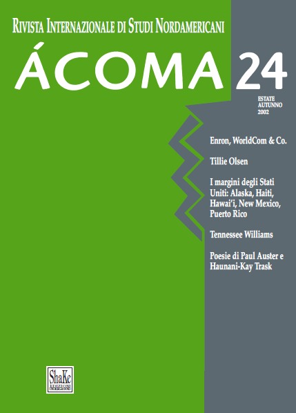 Dated 1931 and unpublished until 1993, this is the first narrative work by Tillie Olsen, written when she was very active in the American Left. The textual analysis reveals thematic, stylistic and linguistic modes which echo in her later work – some connected to the political activity within the Communist party and related to proletarian realism, theorized by Michael Gold; others already revealing the intellectual autonomy and independence that will be among the distinctive traits of Olsen’s work. The picture of the American Depression years is depicted with honesty, and there doesn’t seem to be room for hope, since a young life is broken by poverty and absent social welfare. The writer’s personal experience confirms the idea: the circumstance of her life will silence her literary career; when she will write again the result is short stories renowned among the best among the world literature.